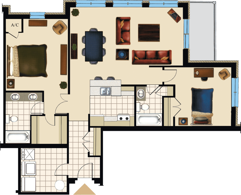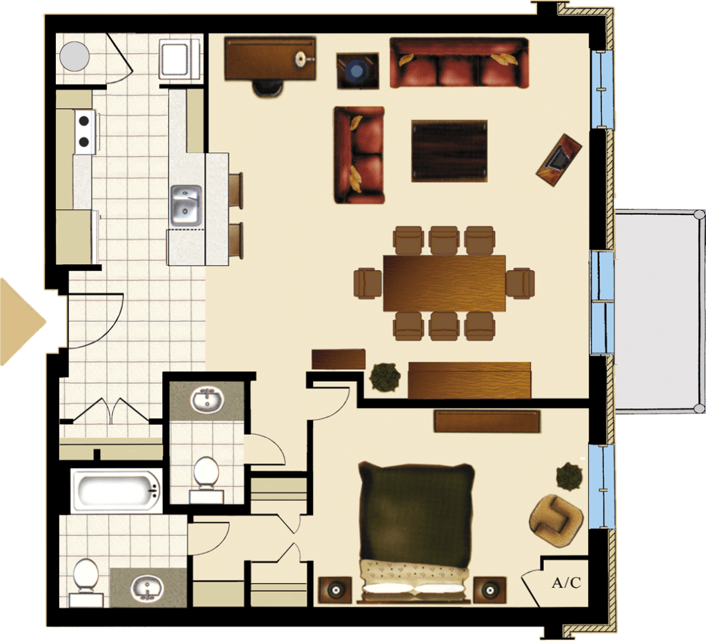 - Lavish bathroom(s) with 5′-0″ acrylic one-piece bathtub (white)